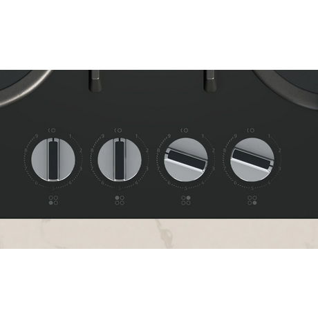 Featuring innovative FlameSelect technology, this hob offers precision control over your cooking temperature for consistent results. The sporty metallic sword knobs provide an ergonomic grip, ensuring ease of use while adding a touch of elegance to the appliance. With robust cast iron pan supports, you can securely place your cookware, guaranteeing stability during the cooking process.