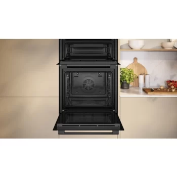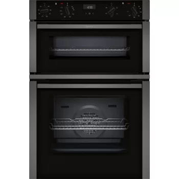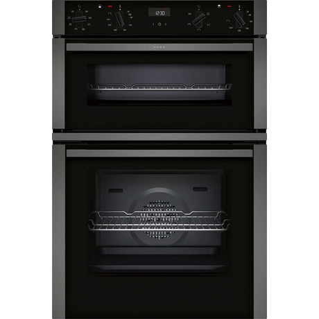 The Neff U1ACE2AG3B is a stunning built-in electric double oven that brings sophistication and functionality to your kitchen. Finished in an elegant graphite grey, this oven is designed to blend seamlessly with modern interiors while offering top-notch cooking performance.