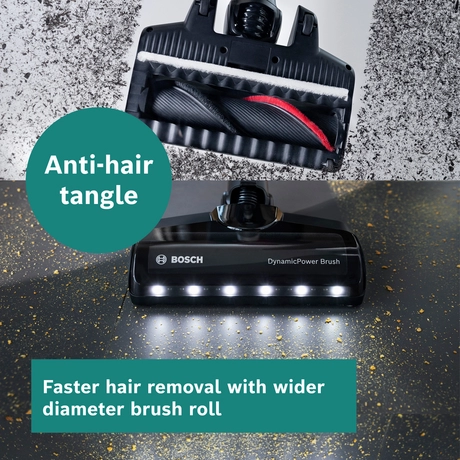 The ProAqua features AutoDetect technology to adjust airflow for different floor types, while the AllFloor Dynamic Power Brush delivers 99.9% dust pick-up* with anti-tangle technology and LED headlights to illuminate dirt. An included second battery ensures uninterrupted cleaning power.
