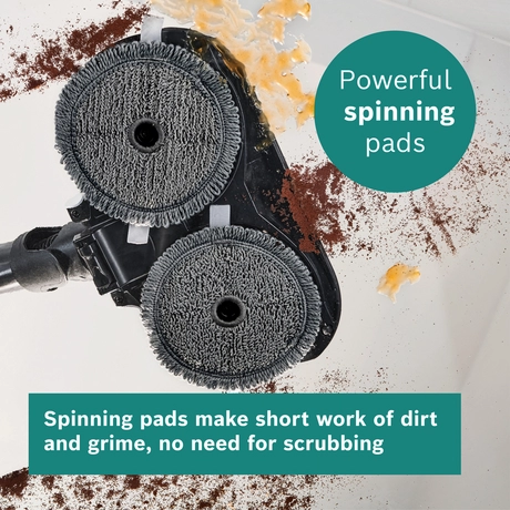 High-speed spinning pads provide precise mopping performance, while the HEPA Filtration System traps dust for cleaner air. Enjoy peace of mind with a 10-year motor warranty, making the Bosch ProAqua your perfect cleaning solution.
