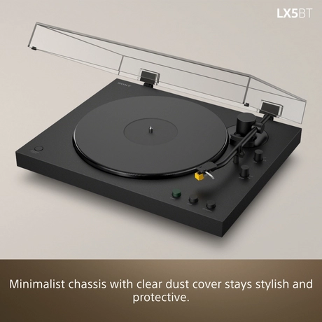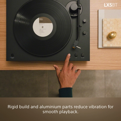 Constructed with quality in mind, the vibration-resistant cabinet, die-cast aluminium platter, and anti-slip rubber mat ensure steady rotation and enhanced sound clarity. The advanced audio circuitry maintains purity across your listening sessions. Choose this turntable for a refined vinyl experience that combines convenience, durability, and premium sound quality in a sleek pure black design.