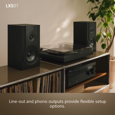 Experience effortless vinyl playback with the Sony PSLX5BT.CEK wireless Bluetooth turntable, featuring a fully automatic belt-drive and one-touch operation. This setup guarantees smooth, reliable performance while preserving your records’ integrity through stable tracking and minimal wear, thanks to its premium MM cartridge and finely tuned stylus pressure.