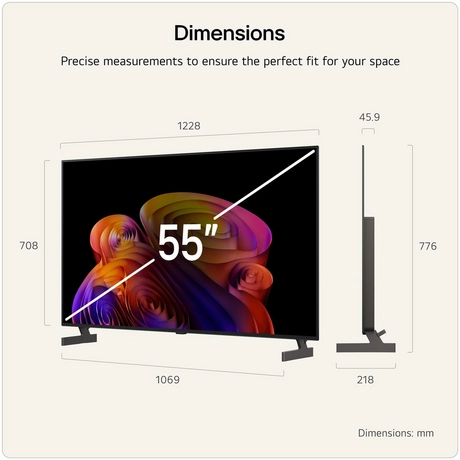 Ideal for those who value seamless entertainment, the TV’s smart webOS platform features advanced AI for personalised recommendations and easy navigation. The AI Magic Remote enhances usability, making content browsing simple and intuitive. Gamers will benefit from the excellent gaming performance, experiencing smooth motion and responsiveness. Dolby Vision and Filmmaker mode provide authentic, cinema-quality visuals, giving you true-to-intent picture quality for films and shows.