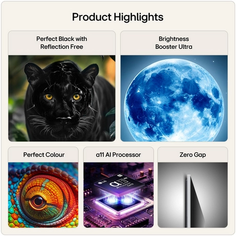 Ideal for film lovers and tech enthusiasts, this model features the sleek One Wall Design with an ultra-slim profile, integrated flush fit wall mount, and narrow bezels, blending beautifully into your living space. The Reflection Free Premium screen reduces glare, allowing you to enjoy your favourite shows and movies without distraction. Dolby Vision and Filmmaker mode provide an authentic cinematic experience straight to your home.