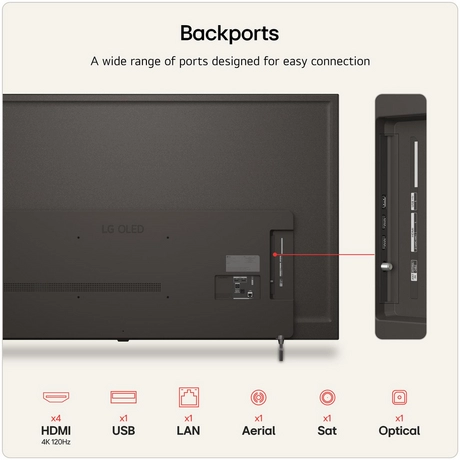 Ideal for users seeking advanced entertainment with user-friendly features, this TV runs on the Smart webOS platform with intelligent AI functionality. The AI Magic Remote makes navigation effortless, while compatibility with DVB-T2/C/S2 digital tuners and a coaxial antenna ensures broad signal support. Additionally, its gaming capabilities provide a smooth, responsive experience for avid gamers.