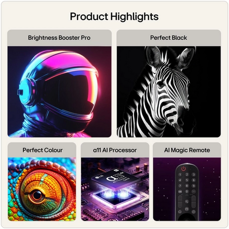 Perfect for home entertainment enthusiasts, this model combines cutting-edge technology with the easy-to-use Smart webOS platform. The AI-powered features and AI Magic Remote make navigation and content discovery effortless. Gamers will appreciate the responsive setup that supports an immersive and smooth gaming experience. From movies to gaming and streaming, this TV adapts to deliver exceptional image quality with seamless user convenience.