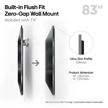 One Wall Design – ultra slim with built-in flush fit wall mount and narrow bezels |
